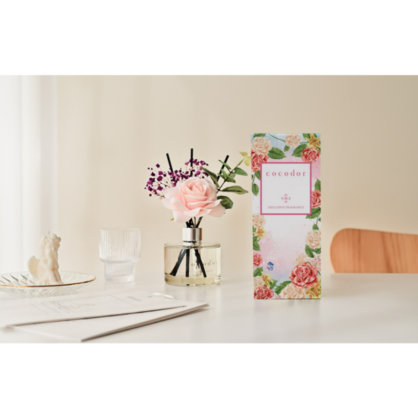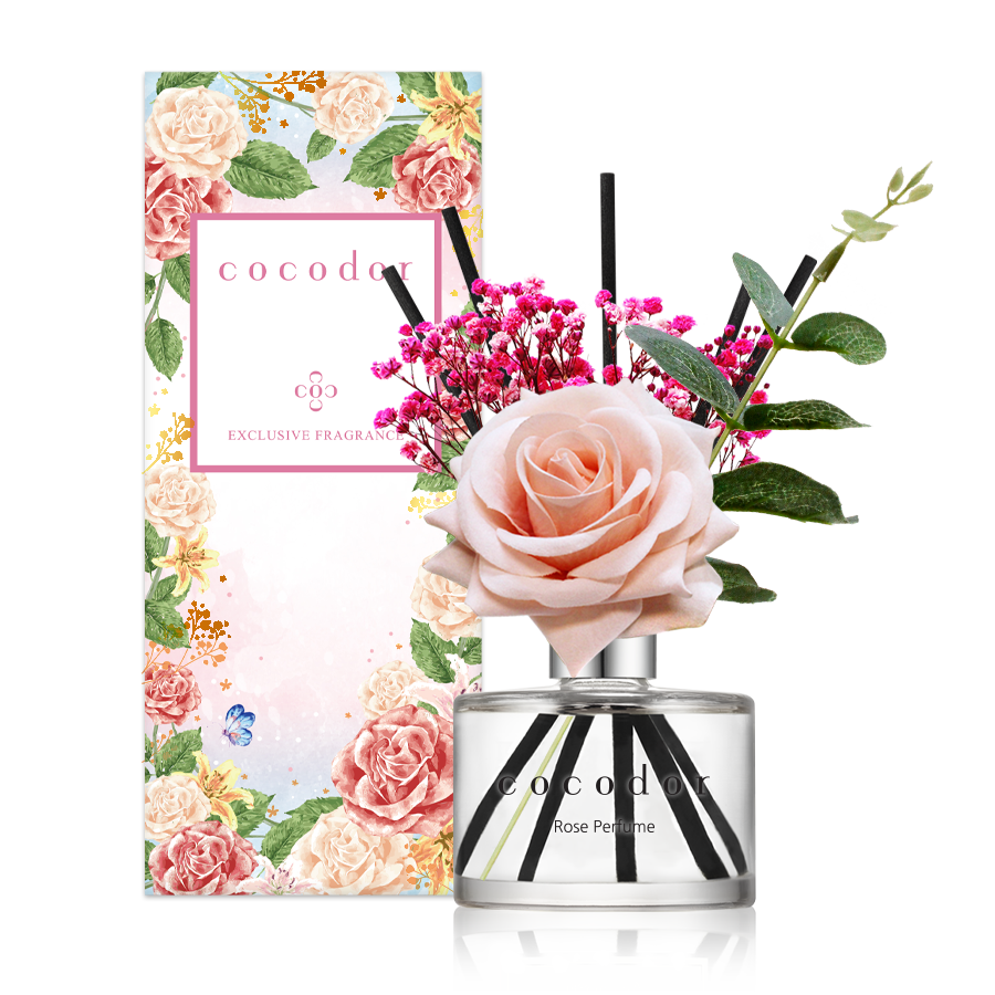 Prachtige geurdiffuser met de geur rose perfume.Inclusief:1x Roos bloemstokje1x eucalyptusstokje1x rode geconserveerde bloem5x stuks rietstokjes.