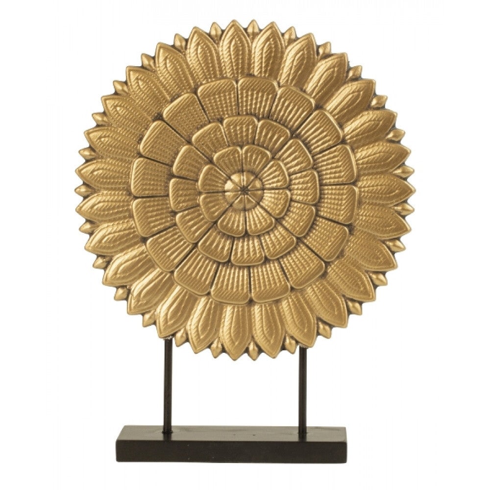 Moderne ronde, gouden houten decoratie op een zwarte houten voet, hoogte: 31cm, breedte: 24cmMateriaal: houtKleur kleurrijk