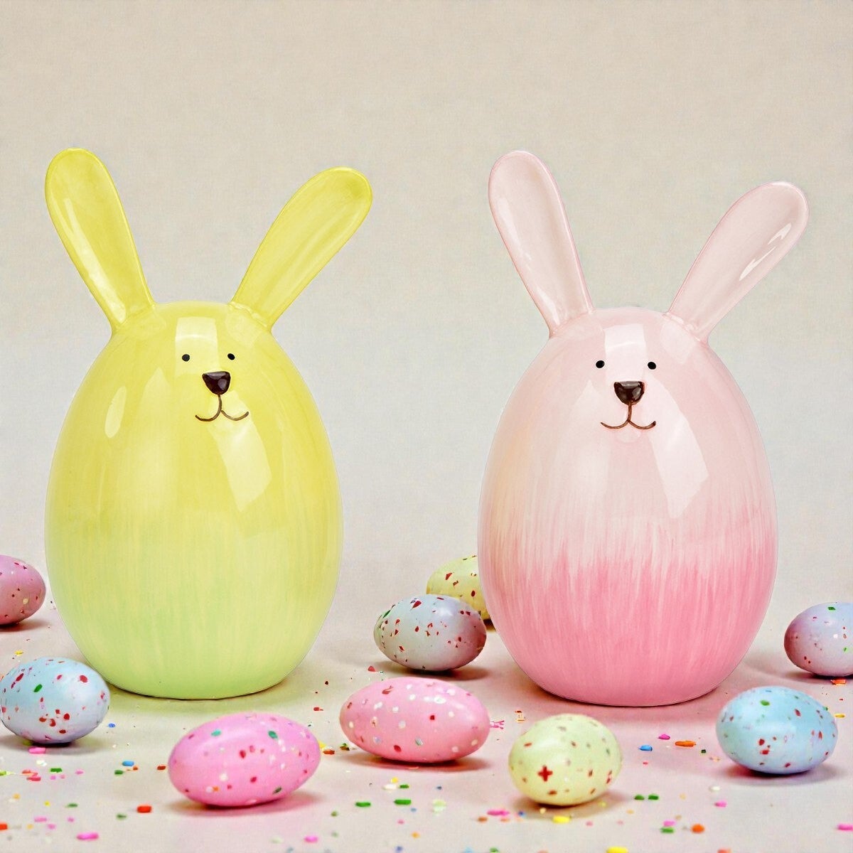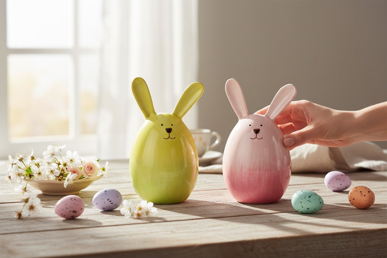 Decoratief Ei Konijn - Keramiek - Set van 2 - 9x15x9 cm