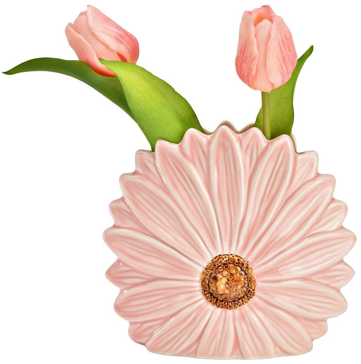Deze roze Vaas Gerbera Bloem is een sfeervolle eyecatcher die direct kleur en vrolijkheid toevoegt aan je interieur. De vaas heeft een elegante bloemvorm en is gemaakt van keramiek, waardoor hij stevig aanvoelt en een decoratieve uitstraling heeft. Dankzij het compacte formaat past hij moeiteloos op een vensterbank, kast, sidetable of eettafel. Ideaal voor een klein boeketje, enkele losse bloemen of als op zichzelf staand decoratiestuk.