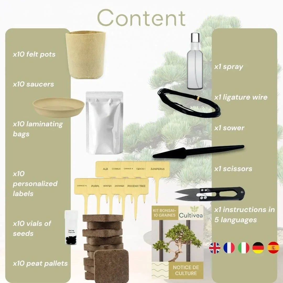 Of u nu een natuurlijk tintje aan uw interieur wilt toevoegen, de eeuwenoude bonsaikunst wilt ontdekken of een origineel en inspirerend tuincadeau wilt aanbieden, deze kit is de perfecte oplossing. Elk zaadje dat je plant is een uitnodiging om te vertragen, te ademen en een levende verbinding met de natuur te creëren.
