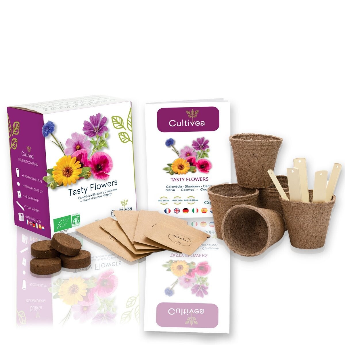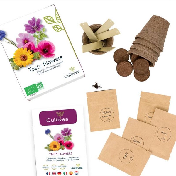Tasty flowers grow kit - Kweek je eigen eerbare bloemen. 100% ecologisch en biologisch